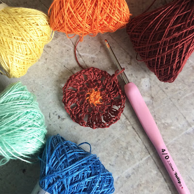 Shawl Project: Book Two”, from The Crochet Project, and I'm using Eden Cottage Yarns Titus 4-ply in Rambling Rose and Oakworth 4-ply in Compost.
